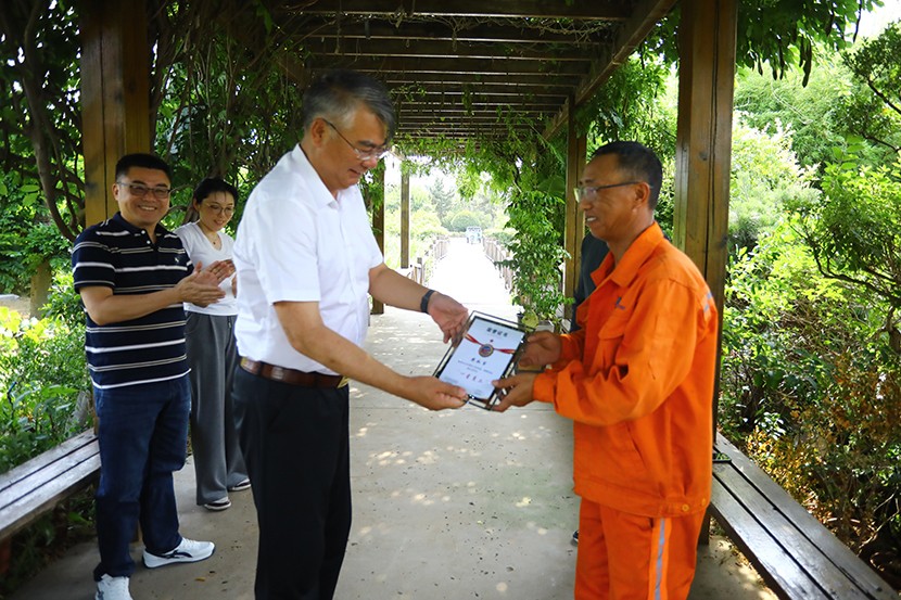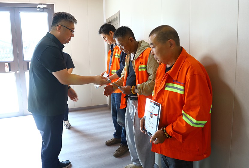 此次頒獎打破傳統(tǒng)集中表彰模式,將頒獎臺搬到生產建設最前沿,公司領導班子成員親自前往光伏安康驛站、創(chuàng)智綠園、大浦片區(qū)、云橋路施工現場、佟圩路施工現場、益豐園林園區(qū)6個一線點位,為獲獎員工頒發(fā)榮譽證書,并送上暖心祝福。當公司領導將“星級員工”證書遞到員工手中時,獲獎者難掩激動:“這份榮譽既是肯定,更是責任。我會繼續(xù)扎根基層,為臺北(華茂)貢獻全部力量!”