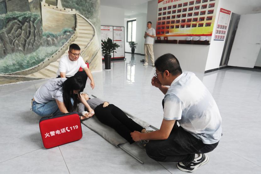 培訓中,連云港德安消防職業(yè)培訓學校資深教員王彥結合多年的工作經驗和實際案例,細致地向大家開展了消防理論培訓,結合室內外的消防設施的作用,系統(tǒng)講解了整個建筑消防系統(tǒng)的工作流程,介紹了應急疏散逃生的正確方法步驟;現場教學了消防護具穿戴、自救呼吸器使用;演示了簡易擔架制作、簡易包扎;著重示范了心肺復蘇以及海姆立克急救等。通過生動形象地講解,全體員工對消防安全知識有了更全面、更深入地了解。