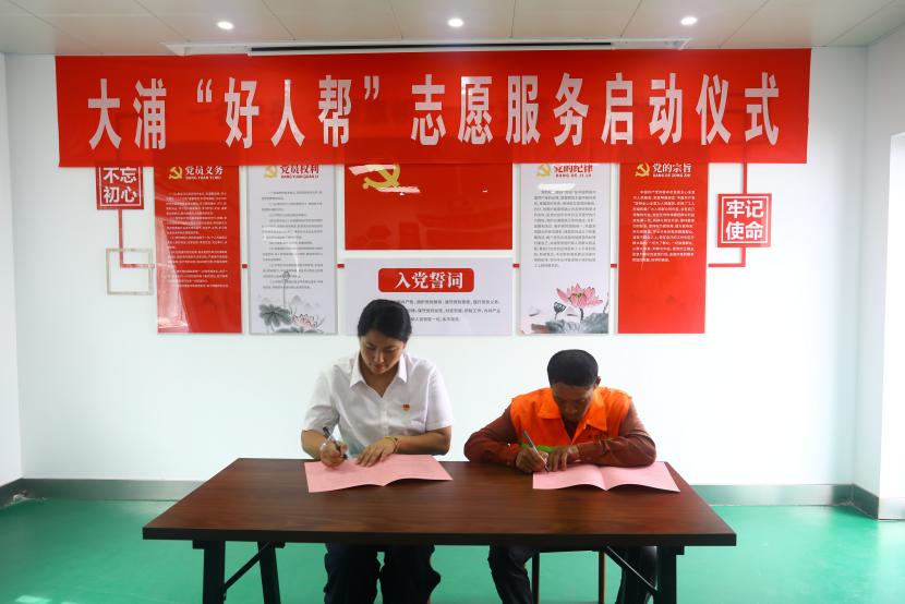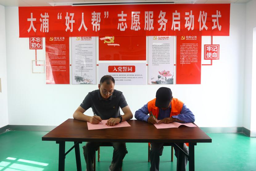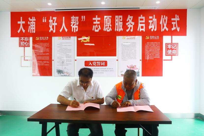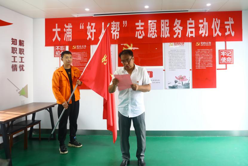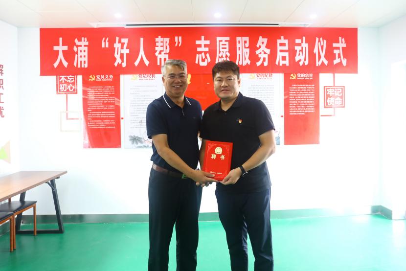 公司黨委書記、董事長王德志為“中國好人”常皓同志頒發(fā)了聘書,聘請常皓同志擔(dān)任“好人幫”志愿服務(wù)隊名譽(yù)輔導(dǎo)員。黨委副書記、工會主席、副總經(jīng)理傅健向“好人幫”志愿服務(wù)隊進(jìn)行了授旗,大浦分公司負(fù)責(zé)人代表“好人幫”志愿服務(wù)隊宣讀了《爭當(dāng)好人倡議書》,三名“好人幫”志愿服務(wù)隊成員與幫扶對象結(jié)對并簽訂了幫扶協(xié)議書。