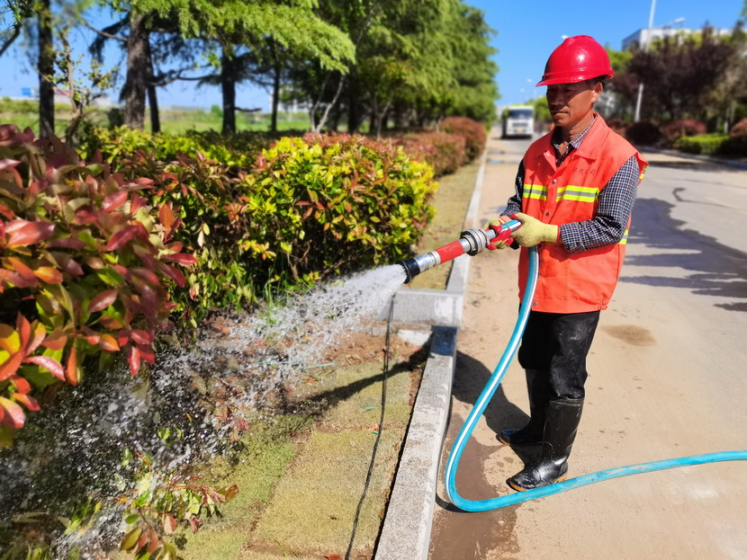 在各條基礎(chǔ)養(yǎng)護(hù)路段,綠化工人正在澆水,為花草樹木“解渴”。尤其是剛移植的苗木和剛出土的青苗,氣溫較高,容易造成脫水。通過(guò)適度澆水,保持土壤濕潤(rùn),促進(jìn)植物根系吸收土壤中的養(yǎng)分,有助于生長(zhǎng)和扎根,提高綠化成活率。