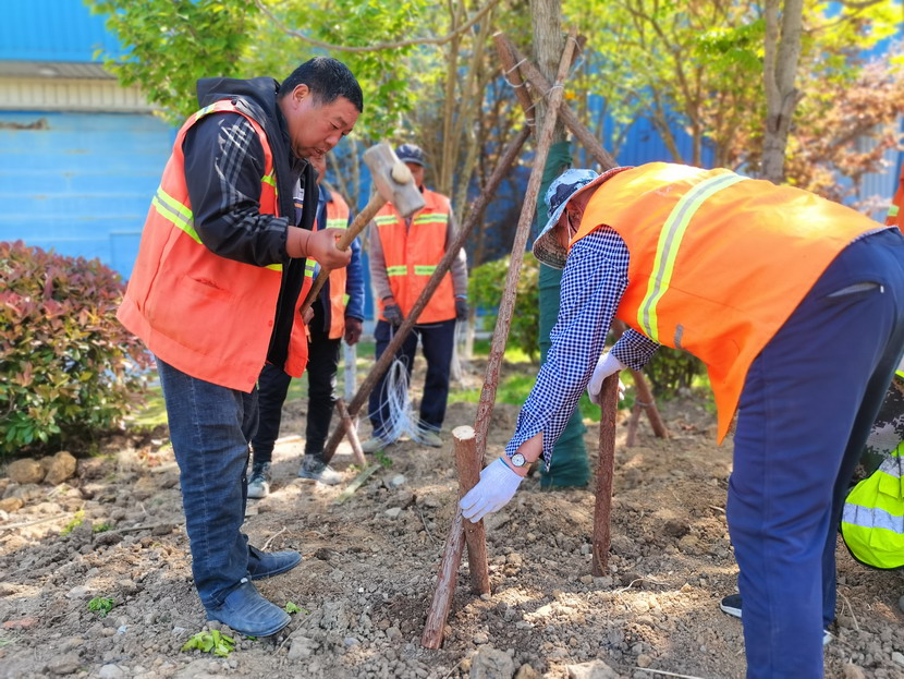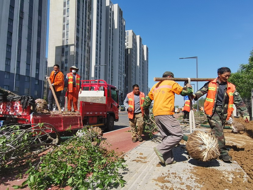 在中科院,只見工程車輛來(lái)來(lái)往往、橙色身影忙忙碌碌……到處都是一派繁忙、紅紅火火的景象。闖將孫玉虎,虎將金華穿梭在工程現(xiàn)場(chǎng),親自指揮調(diào)度綠化工程收尾工作。大家分工有序:定點(diǎn)劃線、搬運(yùn)苗木、栽植澆水、垃圾清理……有條不紊。中午時(shí)分,熾熱的陽(yáng)光照在臉上也是火辣辣的,忙碌了一上午的工人大汗淋漓,擰開瓶蓋,咕嚕咕嚕喝了幾大口涼水,用袖子蹭了下額頭的汗,又干勁十足地投入到工作中。