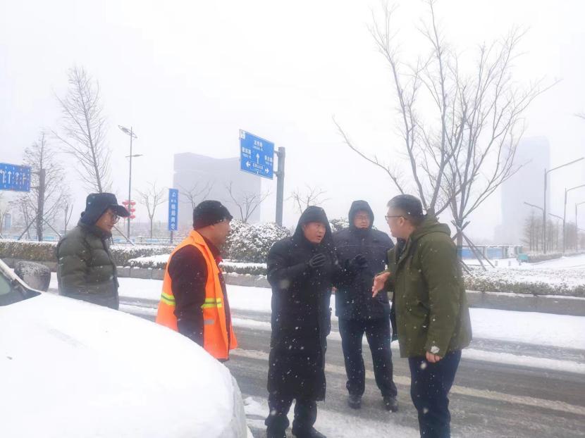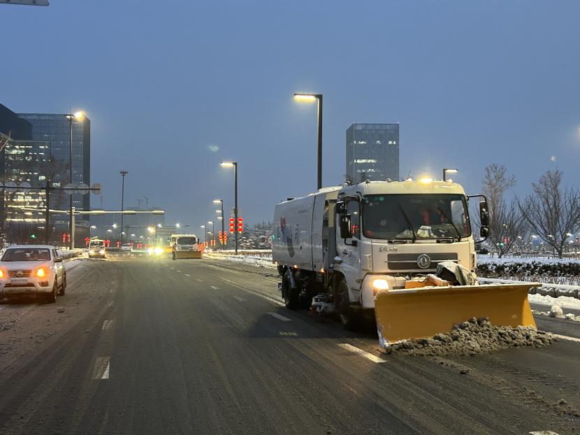 上午10時(shí)許,暴雪如約而至。裝有融雪劑的車(chē)輛全部整裝待發(fā),聞令而動(dòng),采取“人工+機(jī)械”不間斷作業(yè)模式,對(duì)轄區(qū)主次干道、橋涵、火車(chē)站東站、創(chuàng)智大廈等帶坡路段及時(shí)拋撒融雪劑,采取“滾刷+鏟車(chē)”組合方式,反復(fù)排掃路面積雪,確保主次干道、帶坡路段通暢無(wú)冰。