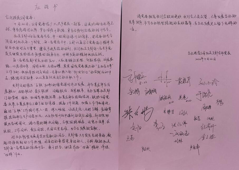 【給黨委回封信】機關全體黨員簽名應戰(zhàn)書