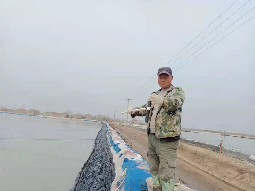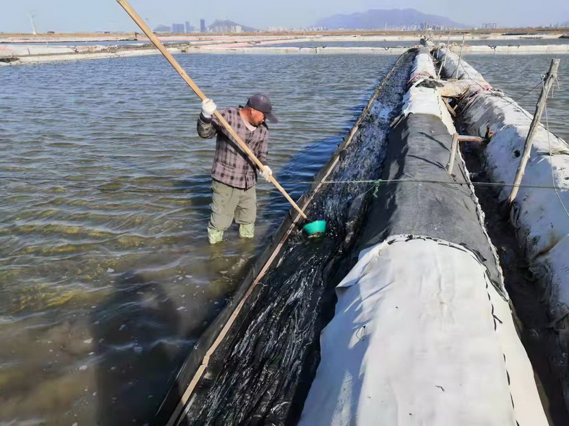 2021年,他服從公司生產(chǎn)機(jī)制的轉(zhuǎn)換,被安排到海濱三組18號(hào)灘作為領(lǐng)灘手,負(fù)責(zé)鈣液生產(chǎn)。為了不浪費(fèi)每一毫米的蒸發(fā)量,每天天剛蒙蒙亮,就能看見他在縱橫阡陌的鹽田間穿梭,根據(jù)灘田結(jié)構(gòu)、針對(duì)不同季節(jié)確定走水路線,每天重復(fù)著調(diào)節(jié)鈣液、修整溝堰、修補(bǔ)塑布的工作,遇到大雨,他就不回家,守在灘上,及時(shí)把鈣液按照不同濃度引進(jìn)鹵臺(tái)、鹵窖,雨水結(jié)束,第一時(shí)間把灘面淡水排掉,將鈣液回引進(jìn)行晾曬。在生產(chǎn)面積僅有311畝的情況下,他每天要走3萬(wàn)-4萬(wàn)步,不僅對(duì)他自己的生產(chǎn)單元,對(duì)整片鈣液生產(chǎn)單元了如指掌,有多少閘門,多少電線桿,都了然于心。全年下來(lái),生產(chǎn)鈣液28000方,在12個(gè)鈣液生產(chǎn)單元中名列前茅,領(lǐng)先超9000方,實(shí)至名歸的生產(chǎn)標(biāo)兵。