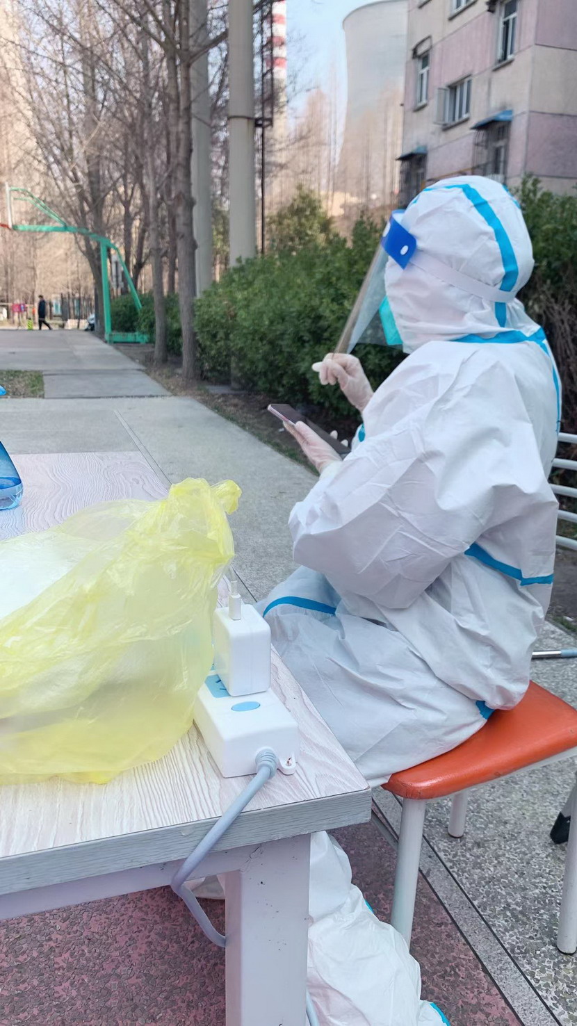 3月8日,臨時(shí)黨支部成立,黨員志愿者們隨即奔赴社區(qū)核酸檢測(cè)現(xiàn)場(chǎng)。當(dāng)天,志愿者們穿上防護(hù)服。“你好,請(qǐng)戴好口罩,出示健康碼?!薄澳愫?,這邊人比較少,請(qǐng)往這邊走,保持一米距離?!本S持現(xiàn)場(chǎng)秩序、檢查健康碼、登記核酸個(gè)人信息……志愿者們堅(jiān)守在各自責(zé)任區(qū),細(xì)心、耐心回答居民們的各類問(wèn)題,忙得連喝水的時(shí)間都沒(méi)有。細(xì)致周到的服務(wù)、無(wú)私的奉獻(xiàn)精神,得到了社區(qū)居民們的一致認(rèn)可和贊揚(yáng)。