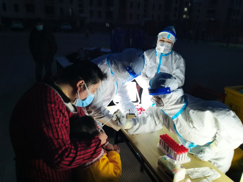▲昌圩社區(qū)臨時(shí)黨支部黨員志愿者與醫(yī)護(hù)人員一起工作到深夜