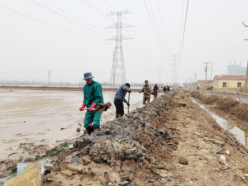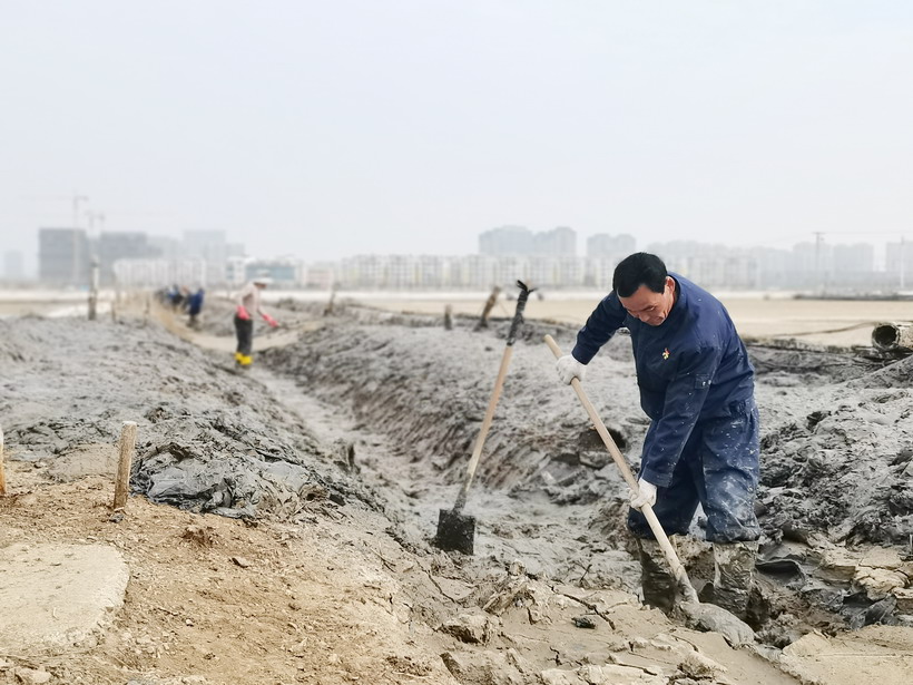 近日,迎著初春的風走進昌圩班組,在印有醒目“開局就是決戰(zhàn),起步就是沖刺”的橫幅下,退休黨員朱春年正帶領職工撩溝做堰,更換結晶池塑料布等。兩鬢斑白的朱組長士氣毫不減當年,一邊忙一邊說:“昌圩結晶池因灘工撂荒較嚴重,冬準工程量大,為了能完成公司冬準計劃,我們把海濱、程圩職工都抽調過來了,過年都在干活,目前這邊1000畝結晶池已經(jīng)完成,春節(jié)期間灌了一部分,現(xiàn)在天時好,我們得抓緊時間,早灌池,早落鹽!你們自己轉轉、看看吧,我實在太忙了····”。