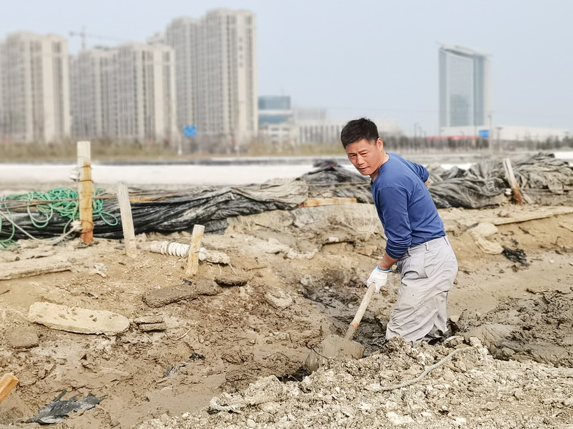 下一站,我們來到海州灣公司先鋒班組,老職工、老組長沈秀成帶領全組職工正在疏通進鹵溝,他們揮動著鐵锨,泥土隨著锨頭準確地落到了堰邊上,一條筆直的新轉溝在沈組長身體的不停移動下逐漸形成,看著他那揮汗如雨極為投入的熱情,我們慢慢地向他走進。沈組長看到我們的到來,丟下手中的鐵锨,抹了一把汗水,上前熱情和我們打招呼。他告訴筆者:“堿廠關了,外面人都說臺北不行了,我偏不信,我們臺北黨委有戰(zhàn)略眼光,我們抓住鹽價上漲大好時機,礦鹵復產(chǎn)正當時。自公司冬準工作開展以來,我們已經(jīng)完成先鋒班組改灘。現(xiàn)在已經(jīng)入春,2月底我們一定要搶灌池,搶長鹽,爭取為公司創(chuàng)收創(chuàng)效早做貢獻!”看著老組長神采奕奕的表情,侃侃而談的神態(tài),看著那一條條堰棱整齊,條線筆直的池堰,對這位一輩子奮斗在一線的老員工產(chǎn)生了一種敬仰之情。