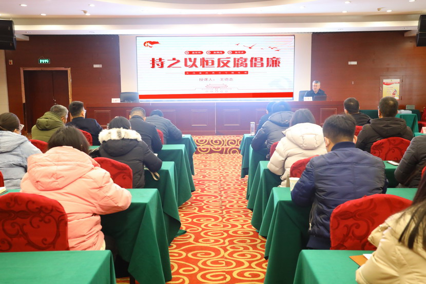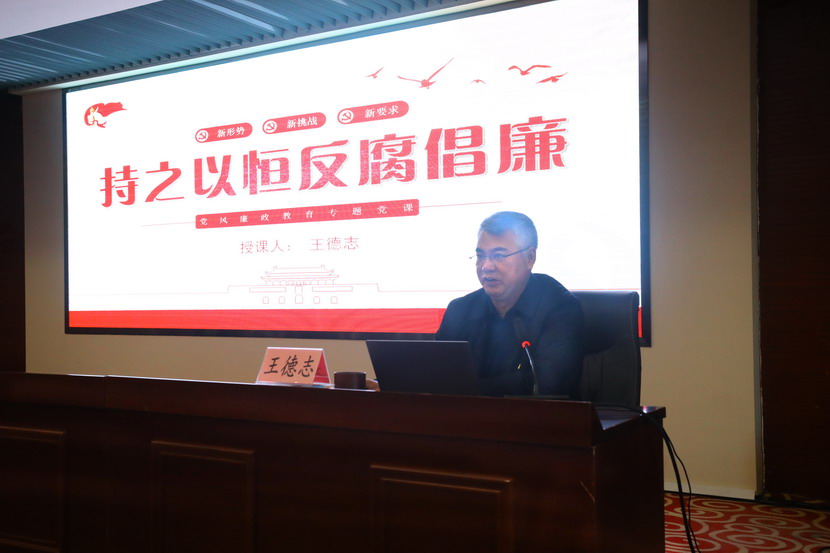 隨后,公司黨委書(shū)記、董事長(zhǎng)、總經(jīng)理王德志給大家作題為“持之以恒反腐倡廉”的廉政黨課,從當(dāng)前階段反腐倡廉新形勢(shì)、經(jīng)濟(jì)發(fā)展與廉政建設(shè)關(guān)系、企業(yè)反腐工作面臨新挑戰(zhàn)、全面落實(shí)從嚴(yán)治黨總要求四個(gè)方面闡述要加強(qiáng)反腐倡廉工作,促進(jìn)黨風(fēng)廉政建設(shè)。