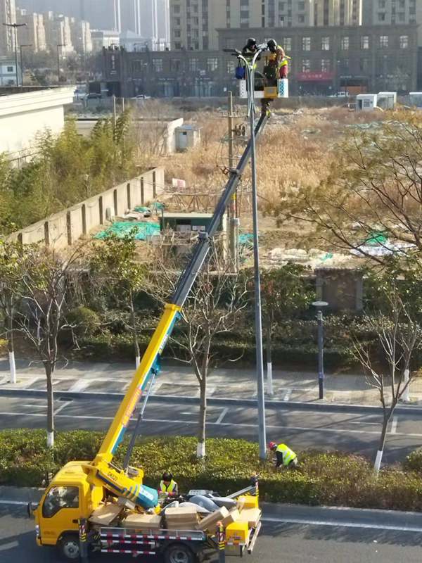 ?該項(xiàng)城市照明提升工程工程量大(約6500套路燈),工期緊。為了趕時(shí)間進(jìn)度,翔立“鐵軍”們由12月27開(kāi)始施工,日以繼夜、馬不停蹄的連續(xù)奮戰(zhàn)在工程一線,沒(méi)有一個(gè)人掉隊(duì),沒(méi)人喊苦叫累,個(gè)個(gè)都像鉚足了勁的“小牯?!?。肩帶《安全員》紅袖章的工程負(fù)責(zé)人喬以成騎著電瓶車(chē)不時(shí)地在海寧大道上來(lái)回穿梭著,“王師傅,高空作業(yè)車(chē)四條支撐臂必須支撐平穩(wěn)牢固后再提升哦”,“段青春,把前方施工的警示牌擺在車(chē)輛后面,還有道路安全錐桶一定要將作業(yè)區(qū)域圍起來(lái),與后面來(lái)車(chē)方向保持安全距離?!痹谑袇^(qū)人流密集的道路上同時(shí)有5臺(tái)登高作業(yè)車(chē)分區(qū)域高空作業(yè)的情況下,他最放心不下,畢竟是高空作業(yè)!為了防止高空墜落,登高施工操作人員全部按要求規(guī)范佩戴安全帶、系好安全繩、絕緣鞋、防寒安全帽、警示馬甲一應(yīng)俱全,武裝整齊。為防高空落物,作業(yè)車(chē)吊籃內(nèi)使用的工具全部系上“失手繩”,安全施工是必要的前提,有措施,有辦法,畢竟千條萬(wàn)條,安全才是第一條!