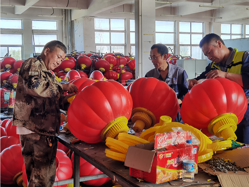 中秋國慶雙節(jié)將至,翔立分公司承接了LED燈籠和中國結(jié)的安裝工程。由于燈籠長期重復(fù)使用,部分配件已經(jīng)損壞、丟失,為了保證工程進度,趕在中秋節(jié)前完成燈籠和中國結(jié)的安裝工作,翔立分公司所有職工和移動抽調(diào)的部分的員工放棄節(jié)假日休息,主動參與燈籠維修工作。所有人分工合作,將壞掉的配件拆掉,換上新的配件,再交由專業(yè)電工測試,確認燈籠完好無損再由安裝人員運輸至路邊安裝。