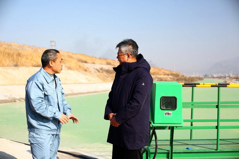 針對(duì)鈣液原料水環(huán)保參數(shù)超標(biāo)等問題,董事長王德志一行現(xiàn)場勘察堿業(yè)公司氨堿上清液,堿業(yè)公司渣場管理處主任盧全才等領(lǐng)導(dǎo)詳細(xì)介紹近期堿廠的環(huán)保整改措施,首先是進(jìn)一步做好酸堿平衡,確保原料水PH值堿度指標(biāo)不超標(biāo),其次是降低氨氮濃度,確保不超標(biāo)。在此基礎(chǔ)上,堿業(yè)公司在氨堿上清液送水通道安裝水質(zhì)在線監(jiān)測設(shè)備,確保及時(shí)發(fā)現(xiàn)異常,做到第一時(shí)間處置。