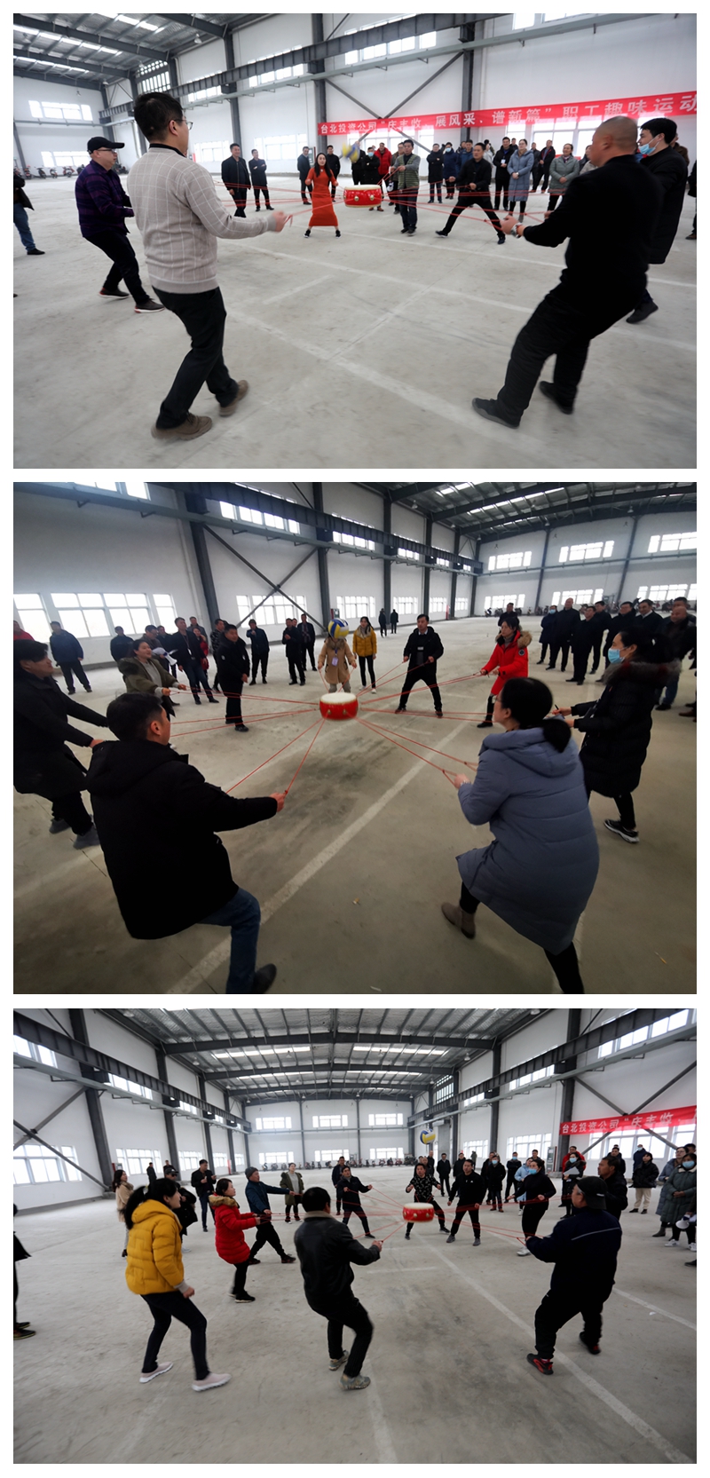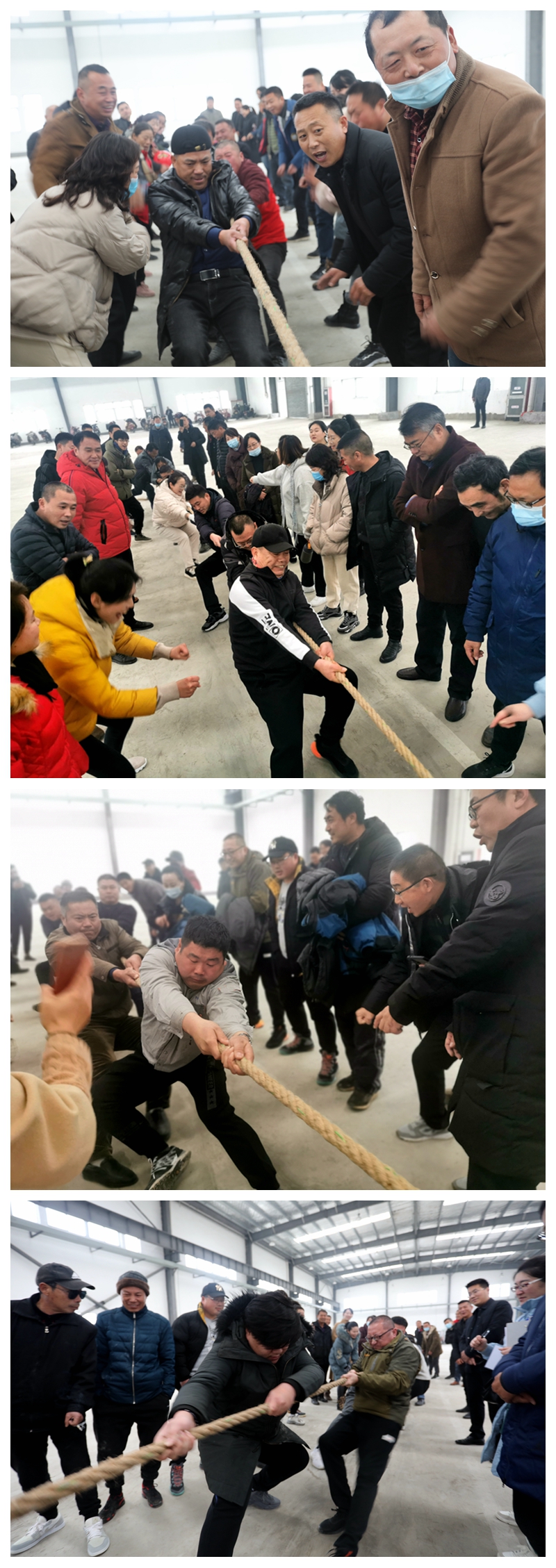 陽(yáng)光熹微,冬日似金。為喜迎2021年新年的到來(lái),大力弘揚(yáng)團(tuán)結(jié)拼搏,昂揚(yáng)向上、奮發(fā)有為的精神風(fēng)貌,營(yíng)造生動(dòng)活潑、寬松和諧、積極健康的良好氛圍,12月28日下午,投資公司在海州灣公司9號(hào)廠房舉辦“慶豐收、展風(fēng)采、譜新篇”迎元旦職工趣味運(yùn)動(dòng)會(huì)。本次趣味運(yùn)動(dòng)會(huì)分為拔河、同心擊鼓、企鵝漫步、快樂(lè)點(diǎn)球等四個(gè)項(xiàng)目,分為兩天舉行,本日舉行拔河、同心擊鼓兩項(xiàng)比賽。