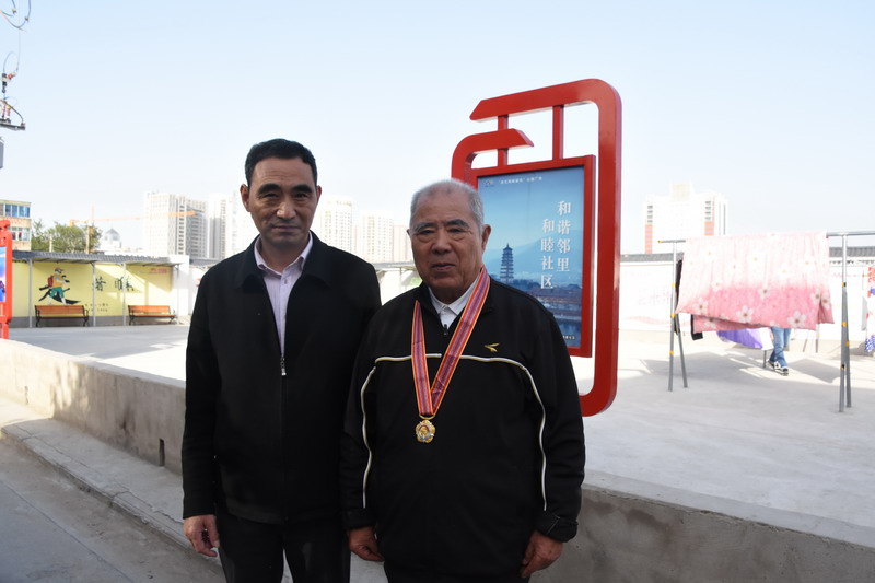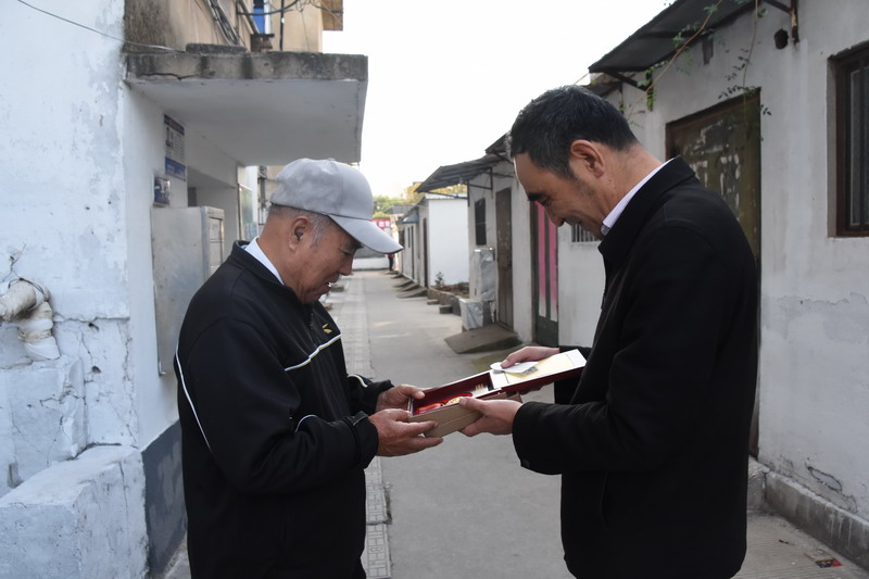 解韻波同志今年83歲,1956年1月參軍,那年19歲,同年6月經(jīng)過短期高強(qiáng)度培訓(xùn),作為無線電通訊兵出國抗美援朝。1959年西藏達(dá)賴集團(tuán)發(fā)動叛亂,剛回國不久的解韻波作為無線電技術(shù)兵種隨即跟隨大部隊入藏平叛。至今他仍保留著抗美援朝軍功章,入藏平叛軍功章、紀(jì)念章等。1962年退伍分配至臺北鹽場工作,1997年退休。今天慰問的時候,在鄰居們的簇?fù)砗推G羨之中,還沒進(jìn)家門,鄰居們就迫不及待地要求打開“紀(jì)念章”一睹風(fēng)采。紀(jì)念獎?wù)聮煸诶蠎?zhàn)士胸前,一眾鄰里夸贊不斷:這份榮譽沉甸甸的。這份榮譽是拿命換來的。這是不得了的榮譽啊。這樣的老兵是我們的寶貝哦,我們要尊敬啊。……就在小區(qū)活動廣場上,老戰(zhàn)士與大家暢談起保家衛(wèi)國光榮的戰(zhàn)斗經(jīng)歷,烽煙往事歷歷在目。退伍后,不褪軍人本色,幾十年如一日立足家鄉(xiāng)建設(shè),為臺北鹽場奉獻(xiàn)青春,為國家建設(shè)貢獻(xiàn)力量。大家對解韻波老戰(zhàn)士的革命戰(zhàn)斗和建設(shè)祖國的歷程表示由衷贊嘆和敬佩。