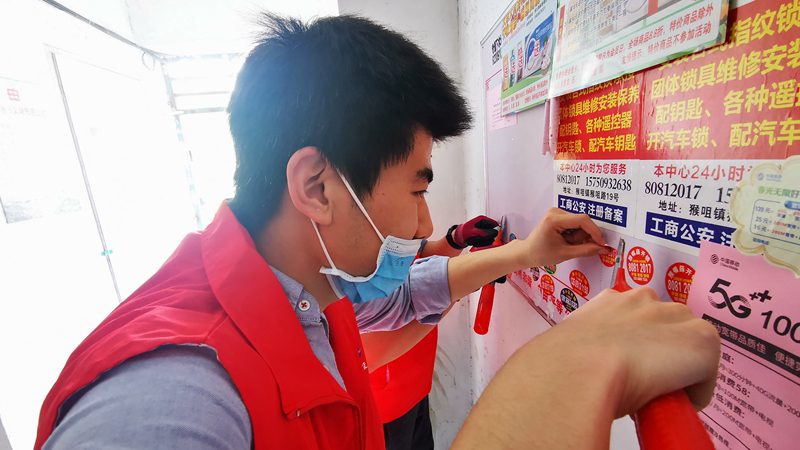 水淋、撕鏟、涂抹,志愿者們“奇招百出”對小區(qū)墻面、電線桿等處張貼、噴涂的小廣告進行全面清理。35度的高溫下,汗流浹背的大伙收獲的不僅是小區(qū)“臉面”煥然一新后勞動的喜悅,還有結識志同道合的新朋友通力協作的“戰(zhàn)友情”。