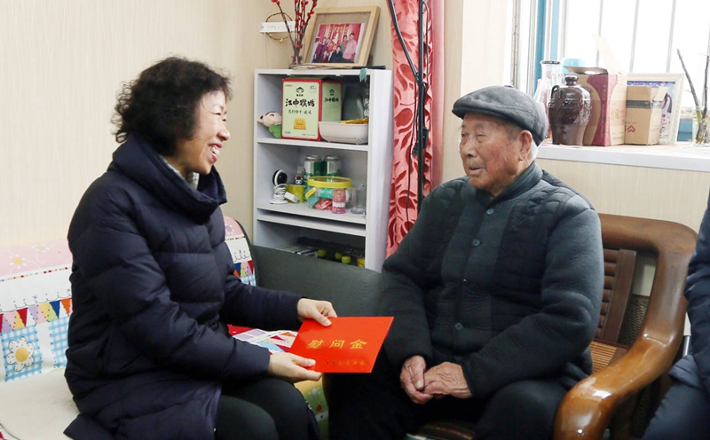 1月3日上午,省總工會黨組書記、副主席朱勁松在市人大副主任、市總工會主席王家全,市總工會黨組書記、副主席丁維杰陪同下,來我公司走訪慰問勞模王壽明同志,親手送上慰問金及慰問品,并為他帶來了新年的祝福。集團(tuán)公司董事長楊龍、工會主席劉承志陪同走訪。