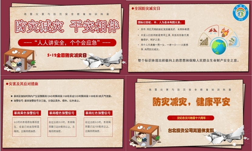 近日,離退休支部開展“5·12防災(zāi)減災(zāi)”科普活動。結(jié)合支部的實(shí)際情況,通過辦公場所用電防火安全檢查和交通出行安全警示,進(jìn)一步排查整改生活、工作中存在的安全隱患。組織觀看防災(zāi)減災(zāi)宣傳片和制作防災(zāi)減災(zāi)PPT來普及防災(zāi)減災(zāi)知識,了解地震、臺風(fēng)、暴雨、洪水等自然災(zāi)害的應(yīng)對措施,來防范化解災(zāi)害風(fēng)險,提升公眾防災(zāi)減災(zāi)的意識和能力,實(shí)現(xiàn)“人人講安全,個個會應(yīng)急”。