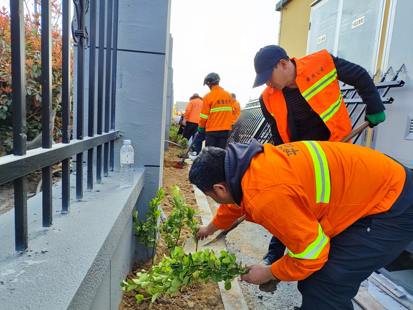 活動現(xiàn)場,在支部書記范曉寶的帶領(lǐng)下,大家熱情高漲、干勁十足,呈現(xiàn)一派繁忙的勞動景象。勞動中,大家兩兩一組,揮鍬鏟土、扶苗填坑、踏土夯苗,干凈利落,一氣呵成。黨員干部率先垂范,發(fā)揚不怕臟不怕累精神。經(jīng)過一上午的辛勤勞動,一株株新栽的花草苗木迎風而立,栽植的932株毛鵑、1384株黃楊在春風中展現(xiàn)勃勃生機,形成了一道綠色靚麗的風景線。