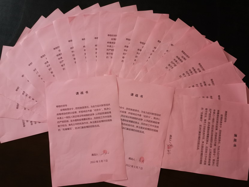 在黨員帶動(dòng)下,群眾也紛紛行動(dòng)起來。“還有我們,我們雖然不是黨員,但是我們也想為抗疫貢獻(xiàn)自己一份力量......”優(yōu)秀職工沈秀成、邱榮濱、韓永剛、占恒春如此說道?!拔覜Q心申請上一線投入到這場沒有硝煙的戰(zhàn)爭,以筑起抵御疫情的嚴(yán)密防線,聽從組織的統(tǒng)一指揮與安排,不計(jì)得失,無論生死,絕不退縮......”,42名志愿者在請戰(zhàn)書上簽上自己的名字并按下手印,紛紛表示,隨時(shí)準(zhǔn)備著黨中央的召喚,祖國的召喚,一聲令下,立即奔赴抗戰(zhàn)一線。