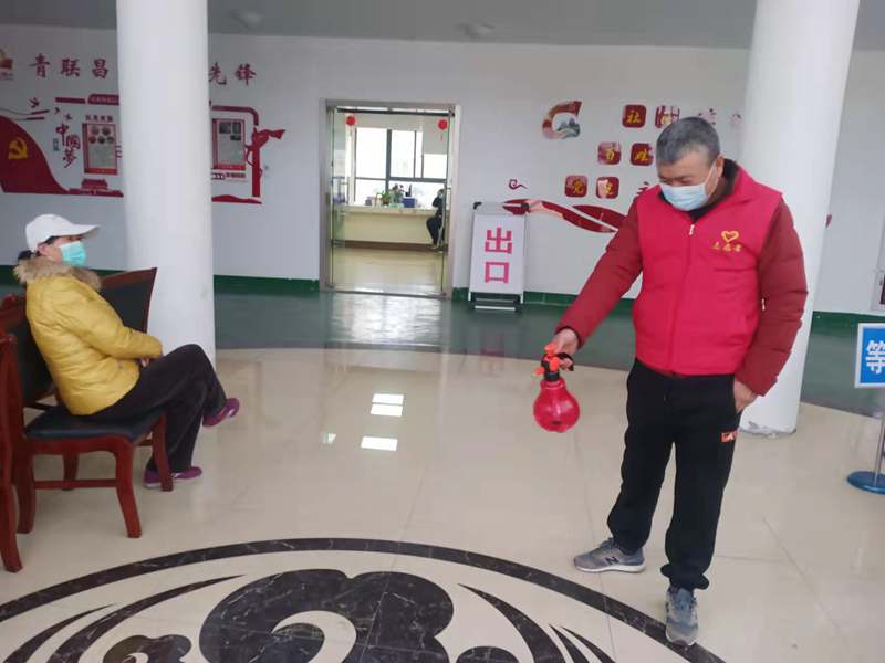?中午,出入的居民少了不少,老金帶上口罩,帶好手套,架上護(hù)目鏡,拿起消毒壺“走起”,閑不下來的他開始了日常的消殺工作。