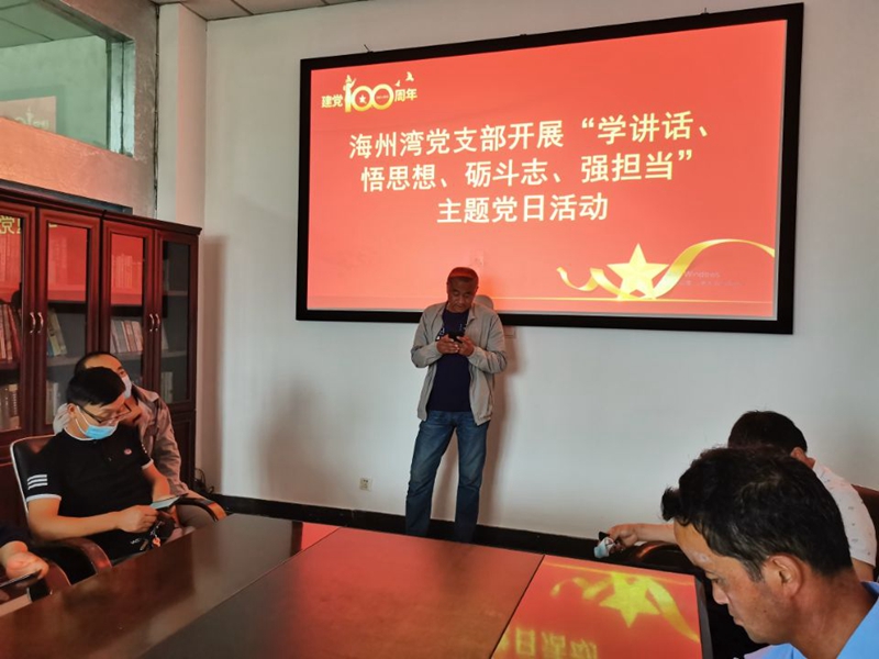 為深入學(xué)習(xí)貫徹習(xí)近平總書記“七一”重要講話精神,進(jìn)一步堅(jiān)定理想信念,引導(dǎo)廣大黨員不忘初心、爭創(chuàng)一流,7月27日上午,海州灣黨支部開展“學(xué)講話、悟思想、礪斗志、強(qiáng)擔(dān)當(dāng)”主題黨日活動(dòng)。