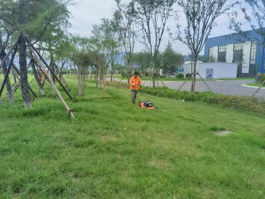 由于前期雨水較多,產(chǎn)業(yè)園草坪“瘋”長,公司迅速帶領(lǐng)苗圃養(yǎng)護(hù)人員,打藥殺菌,修剪草坪。7月25日下午3時,外界氣溫高達(dá)36攝氏度,仿佛一個巨大的蒸籠籠罩著整個產(chǎn)業(yè)園。他們頂著烈日用高效的草坪專用藥物進(jìn)行殺菌消毒,隨后又手持草坪機(jī)、割草機(jī)等工具,對草坪進(jìn)行了精細(xì)修剪,經(jīng)過幾個小時的修剪,草坪終于恢復(fù)了應(yīng)有的美觀和平整度。盡管汗水浸濕了他們的工作服,但他們毫無怨言,用實(shí)際行動詮釋著敬業(yè)精神。