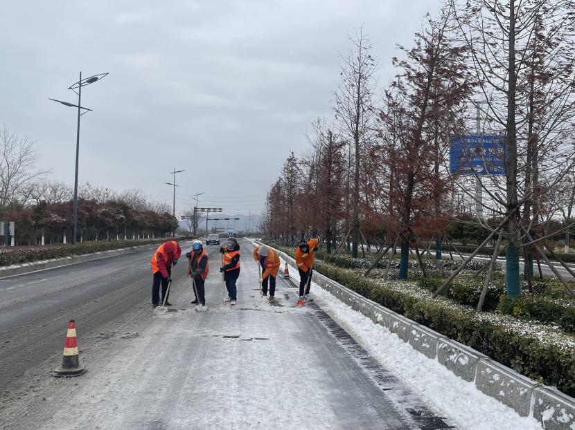 全市普降暴雪,導(dǎo)致區(qū)域內(nèi)積雪結(jié)冰,給道路交通、市民生活帶來了不便,也造成一定的安全隱患。裕升、裕祥養(yǎng)護分公司以“雪”為令,快速集結(jié)“老中青”組合突擊隊,開展“清冰除雪”活動,及時清掃出一條“安全路”。