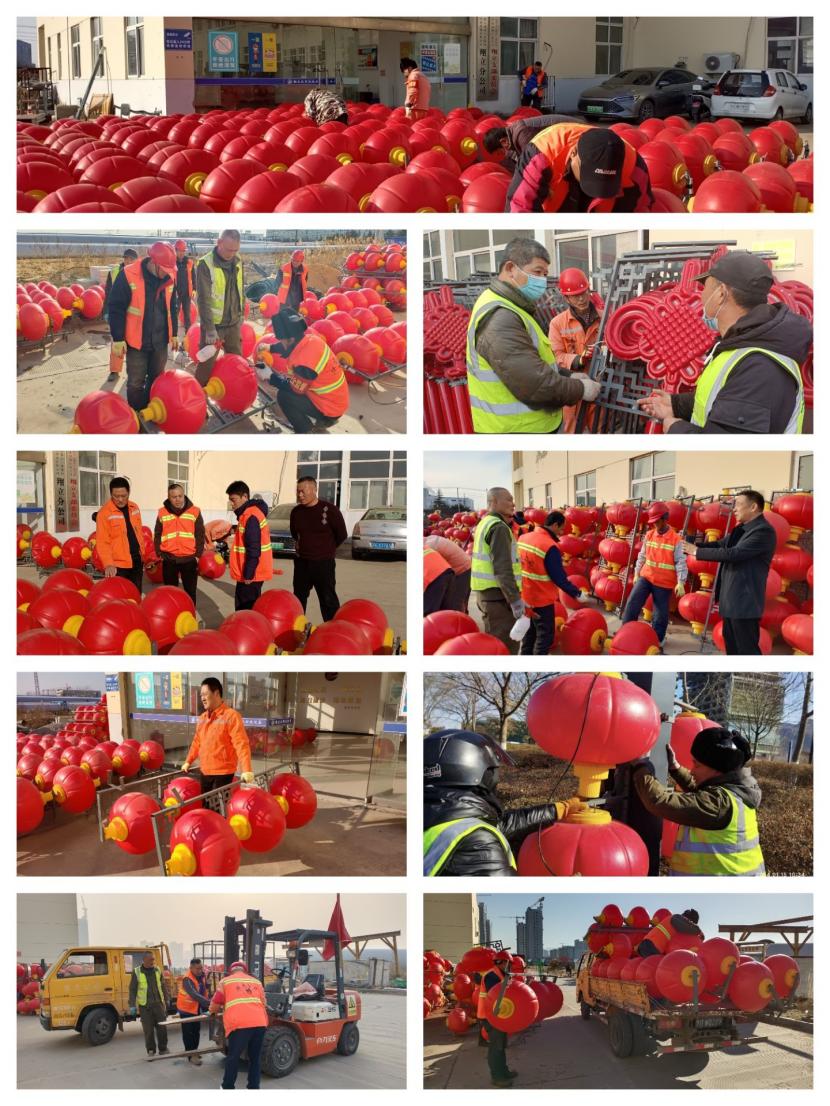 突出一個(gè)“聚”字,與以往不同的是,這次燈籠安裝工作也得到了兄弟單位的大力支持,益豐、盛達(dá)、資源、悅升公司在自身也有工程人手緊張的情況下先后派遣了12人次的電工、安全員、運(yùn)輸車(chē)輛駕駛員等精兵強(qiáng)將支援本次燈籠懸掛精品工程突擊工作。人多力量大,白天安裝工程結(jié)束后,每天晚上公司組織專(zhuān)人對(duì)已安裝好燈籠的每條路段進(jìn)行夜間巡查,對(duì)不亮的燈籠做好標(biāo)記,白天進(jìn)行修理,保障安裝的燈籠中國(guó)結(jié)百分之百的亮化率。