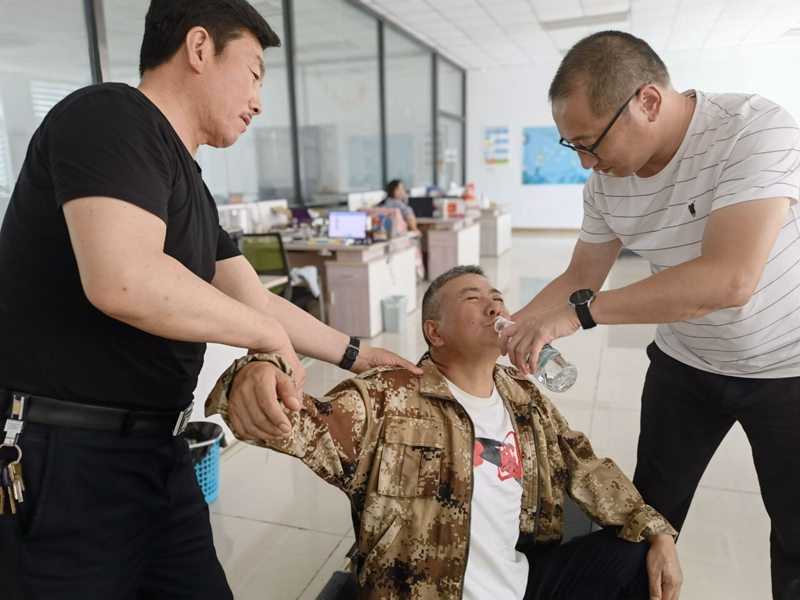 隨后演練開始,大家迅速轉(zhuǎn)移中暑職工轉(zhuǎn)移至通風、陰涼、干爽的地方。