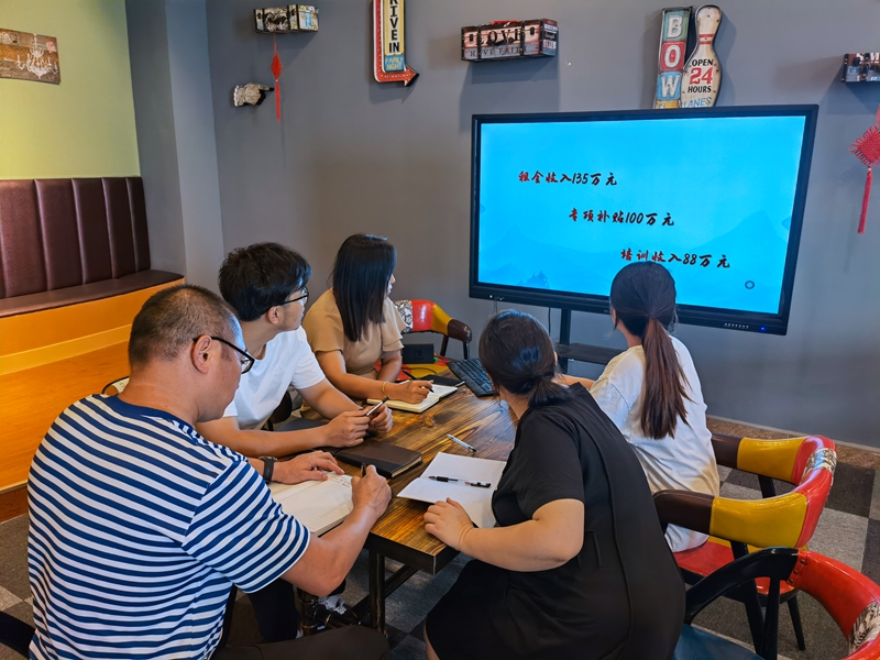 在傳達(dá)投資公司上半年經(jīng)營活動(dòng)分析會(huì)會(huì)議精神,大家圍繞會(huì)議提出的“租賃135萬,補(bǔ)貼100萬,培訓(xùn)88萬”任務(wù)目標(biāo),交流了下一步公司思路和想法,明確了職責(zé)和任務(wù)。圍繞王董事長提出“三高”“1234”“紅燈紅旗”等任務(wù)要求,大家充分領(lǐng)會(huì)了講話的深刻含義,也凝聚了思想共識(shí),在剩下4個(gè)月的時(shí)間內(nèi)發(fā)揮自我革新,艱苦的奮斗的斗爭精神,堅(jiān)決完成投資公司交辦的任務(wù)目標(biāo)。