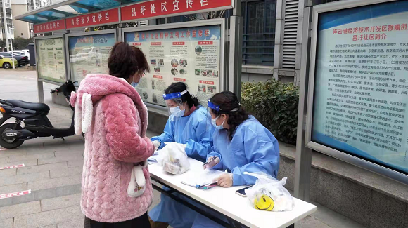 “我白天配合‘大白’做核酸信息采集工作,晚上要把信息及時(shí)錄入電腦,連軸轉(zhuǎn),連掛兩天吊針。昌圩社區(qū)志愿服務(wù)截止到今天配合“大白”完成五次核酸檢測(cè)工作,第一天核酸檢測(cè)1070人,從中午1點(diǎn)到7點(diǎn)多,站了6、7個(gè)小時(shí),雖然很累但我很自豪!因?yàn)槲沂枪伯a(chǎn)黨員!”
