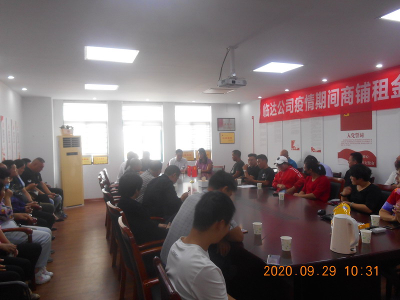臨達(dá)公司黨支部堅(jiān)決和黨中央保持一致,堅(jiān)決擁護(hù)黨中央的決定,認(rèn)真學(xué)習(xí)了省、市以及集團(tuán)公司等減免疫情期間房租的相關(guān)文件精神,仔細(xì)研究、反復(fù)討論,經(jīng)上報(bào)臺(tái)北投資公司、集團(tuán)公司兩級(jí)黨委批準(zhǔn),9月29日下午,減免光伸建材市場(chǎng)、德蘭建材市場(chǎng)、金三角市場(chǎng)、原公司院內(nèi)倉(cāng)庫(kù)、院外大棚、猴嘴山洞共48家商戶(hù)3個(gè)月租金,計(jì)52萬(wàn)余元,減免金額達(dá)全年租金收入四分之一。