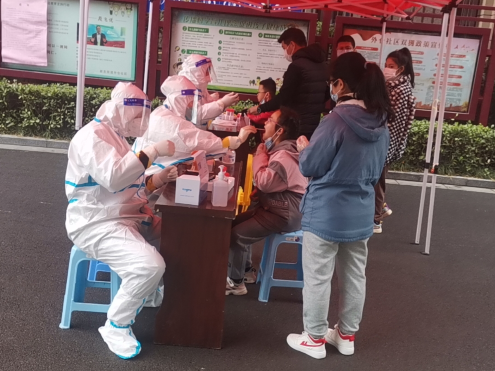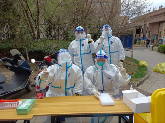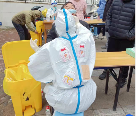 ? ? 12日? 7點(diǎn)集合,領(lǐng)裝備,鑒于昨天的教訓(xùn),早上沒喝水,吃了兩口飯,要不大白服就浪費(fèi)了。出了點(diǎn)意外,排小區(qū)把我們小區(qū)給忘了,沒醫(yī)生來支援,就三個(gè)醫(yī)生,三個(gè)點(diǎn),三張臺(tái),隊(duì)伍排的那叫一個(gè)長(zhǎng)?!罢?qǐng)大家把健康碼打開,保持一米距離,戴好口罩!”這是我上午說的最多的幾句話。咱們贛榆的醫(yī)生非常辛苦,累了一上午,下午還要采黃碼,掃樓,向他們致敬!中午剛領(lǐng)盒飯就通知徐州支援的醫(yī)生到了,來了十幾個(gè),扒拉兩口飯,開始穿裝備。第七輪結(jié)束,感覺人都廢了,渾身濕透,嗓子疼,不想動(dòng)!