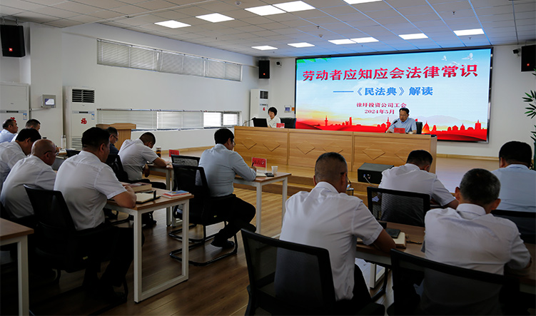 5月24日上午,徐圩投資公司工會在悅升環(huán)衛(wèi)管理中心舉辦《民法典》專題培訓(xùn)班,特邀市總工會法律工作部部長易懷麗為職工解讀《民法典》基本內(nèi)容,同步開展市總工會“勞動法治宣傳進企業(yè)”活動,推動職工法律培訓(xùn)與法律咨詢一體化開展,增強職工依法維權(quán)意識,規(guī)范依法從業(yè)行為。公司80余名干部職工一起參加培訓(xùn)活動。