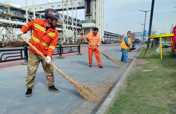 保潔保障“步調(diào)一致”。為完成徐新路、徐圩大道、海濱大道等石化園區(qū)多條道路保障任務(wù)。130余名“保潔先鋒”輪流轉(zhuǎn),每日清掃輔道路修剪石楠等樹葉雜草落葉路線1500米、清洗站臺(tái)座椅40余個(gè)、清掏果皮箱130余個(gè)、轉(zhuǎn)運(yùn)生活垃圾300袋、打包轉(zhuǎn)運(yùn)商鋪垃圾150余車,為保障節(jié)日期間道路保潔鍥而不舍。
