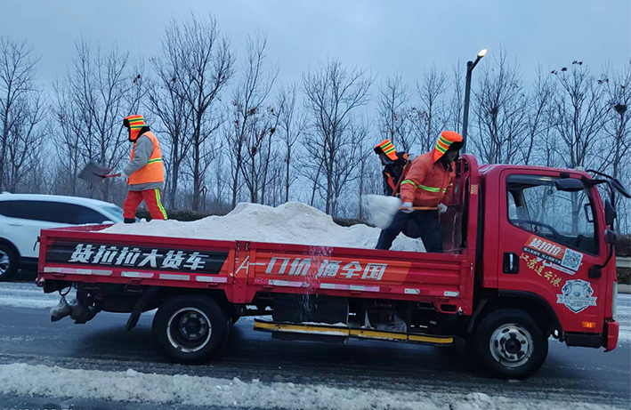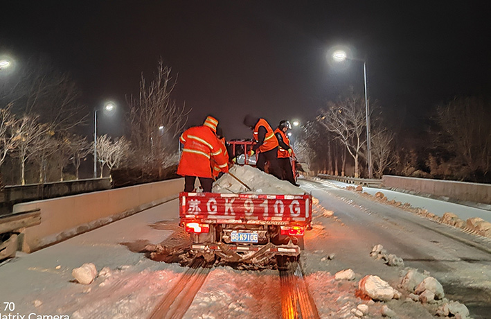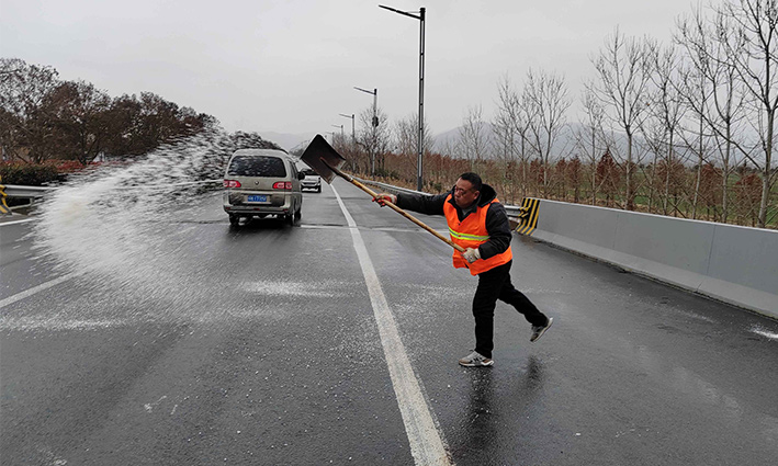20日至21日,該分公司百余突擊隊(duì)員齊心協(xié)力、以雪為、迅速破、無懼風(fēng)寒、不分白天與夜晚,持續(xù)工作10個(gè)多小時(shí),仍然堅(jiān)守道路最前沿。黨員先鋒張學(xué)軍、薛明柱、楊靜、石峰、朱海勇等同志更是率先垂范,黨員模范作用有力得以彰顯。到目前為止共人工撒放融雪鹽斤80多車,600多噸。