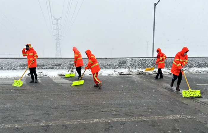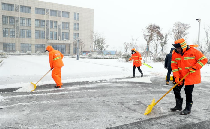 2月1日起,持續(xù)降雪,導(dǎo)致環(huán)衛(wèi)運營管理中心道路上覆蓋著厚厚的積雪和凍冰,嚴(yán)重影響應(yīng)急救援車輛的出行,悅升機關(guān)突擊隊“以雪為令”,迅速集結(jié),對環(huán)衛(wèi)指揮中心院內(nèi)和徐新路開展集中清理積雪工作,確保城市道路交通正常運轉(zhuǎn)。