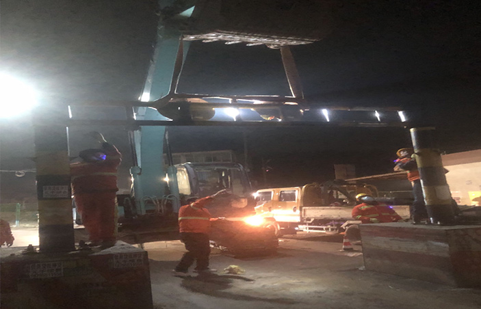 本次施工作業(yè)前,該公司提前報備交警部門,科學(xué)設(shè)計施工方案,合理安排作業(yè)時間,確保安全生產(chǎn)工作。施工人員到達現(xiàn)場后,首先維持現(xiàn)場秩序,在東山閘兩端擺放安全警示標(biāo)志,專人指揮車輛繞行。在挖機的配合下,工作人員有序開展擴寬施工作業(yè),王緒明負責(zé)吊掛安全吊帶、指揮限寬墩擴寬,王守濱負責(zé)現(xiàn)場限高架焊接,現(xiàn)場管理員單華祥負責(zé)指揮擴寬作業(yè),施工現(xiàn)場井序有然,大家各司其職,任勞任怨,發(fā)揚鹽場人不怕吃苦精神,經(jīng)過近3小時的緊張作業(yè),高質(zhì)高效完成限高架限寬墩擴寬施工作業(yè),道路恢復(fù)安全暢通。(李濤)