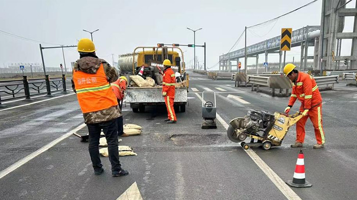 ? ? ? 連日來,為了保障新區(qū)道路平穩(wěn)暢通,市政分公司組織專業(yè)力量,分組開展坑洞修補。市政維修人員加班加點先后對港前大道、徐新路、海濱大道、石化區(qū)陬山路等重點道路大小坑塘30余處破損部位進行修補。
