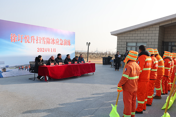冬季是冰凍、降雪等自然災(zāi)害高發(fā)季節(jié),為切實(shí)做好冰雪災(zāi)害性天氣的應(yīng)對(duì)及突擊保障工作,搶險(xiǎn)救災(zāi)減少損失,1月4日下午,悅升公司聯(lián)合徐圩城建公司及社事局、徐圩環(huán)衛(wèi)所在上海路進(jìn)行掃雪除冰應(yīng)急演練。徐圩城建公司副總經(jīng)理肖堅(jiān),徐圩環(huán)衛(wèi)所所長郁紅衛(wèi),徐圩新區(qū)社會(huì)事業(yè)局環(huán)衛(wèi)科科長趙國慧、悅升公司董事長馮如師、總經(jīng)理徐習(xí)華及各公司相關(guān)負(fù)責(zé)人參與本次演練。