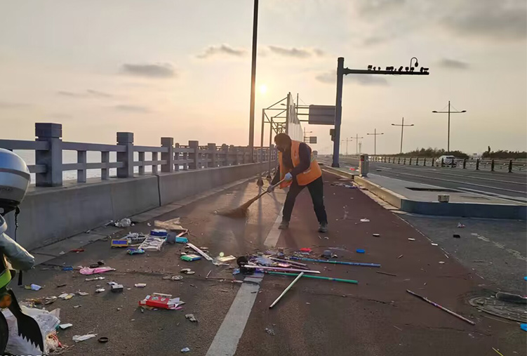 “六位一體”,加強機械作業(yè)力度。保潔分公司全面落實精細化管理工作制度,加大機械化清掃作業(yè)力度,每天持續(xù)出動18臺大清掃車、2臺高壓沖洗車拉網(wǎng)式上路作業(yè)。加強責任區(qū)域巡回檢查力度,清掃打包各類煙花垃圾50多包、泥土30多處,轉(zhuǎn)運各類垃圾100多車;清洗護欄長30多公里、站臺30個,以更高標準、更嚴要求推進節(jié)日期間保潔工作。