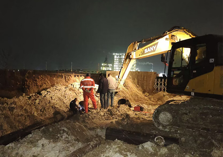 深夜10時許,一處施工現(xiàn)場,施工正酣,挖掘機轟鳴聲不斷,工人們還在加緊作業(yè),雖冬日寒意逼人,工地上仍是一派熱火朝天的景象。陸建軍、季小東等施工人員克服重重困難,破路面,挖掘管路泥土,熔接,鋪設(shè)管道,在遇到的每個困難中,都傾盡全力,擔(dān)當(dāng)作為。經(jīng)過十余天緊張施工,已完成直徑400PE管道768米、直徑200給水管道804米鋪設(shè)工作,完成工作量99%,滿足了規(guī)劃的總體要求,后續(xù)修筑檢查井也在有序進行中。(楊維軍)