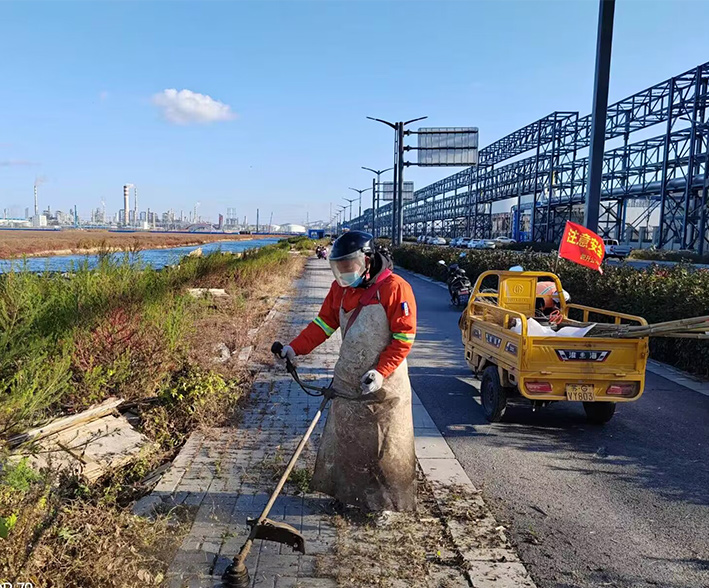及時(shí)配合徐圩城建處理陬山路、石化七消防通道等路段施工產(chǎn)生動(dòng)態(tài)各種垃圾20多車,再次轉(zhuǎn)運(yùn)陬山路主道兩側(cè)綠化帶中石塊2000多斤。針對(duì)園區(qū)建設(shè)發(fā)展情況,序時(shí)推進(jìn)石化五道,四道樣板路工程打造,組織人員突擊清理輔道雜草近1000余米長(zhǎng),撿拾管廊下各種垃圾300余袋。勞動(dòng)現(xiàn)場(chǎng),黨員生產(chǎn)骨干薛明柱、朱海勇等同志先鋒示范閃亮道路最前沿,用實(shí)際行動(dòng)保障園區(qū)美麗環(huán)境。