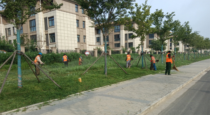 炎炎夏日,仍然阻擋不了綠化先鋒傾情奉獻(xiàn)的熱情。早晨6點,大家就開始一天的工作了。修剪過程中采用人工、機(jī)械相結(jié)合的方式,對面積相對較大、地面相對平整且障礙少的草坪綠地,采用手推式草坪機(jī)進(jìn)行修剪;對障礙物較多的綠化采用人工拔草的方式。驕陽似火,綠化衛(wèi)士們干的熱火朝天,身上的衣服干了濕、濕了干,累了就席地而坐,休息一會,然后繼續(xù)工作。經(jīng)過兩天的持續(xù)奮戰(zhàn),共清理雜草5萬平方米,出色的完成了此次雜草清理任務(wù)。他們用不辭辛苦、愛崗敬業(yè)的態(tài)度換來了新區(qū)優(yōu)美的環(huán)境,也換來了不息的蓬勃朝氣。(陳小東)