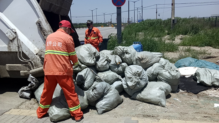 夏日,人們夜生活比較豐富,街道飯店、路邊燒烤等餐飲垃圾原因。在這樣的日子里,人們多了聚會吃喝玩樂的時間,導致各類生活的垃圾異常暴增。環(huán)衛(wèi)“戰(zhàn)士”們要面對著烈日炎炎高溫下收運垃圾的巨大困難,(原有兩臺垃圾清運車)。由于一臺清運車在大修,現(xiàn)在只有一輛車在作業(yè),收運垃圾根本忙不過來,根據(jù)這種工作現(xiàn)狀,垃圾清運班采取全員加班、集中清理、延長時間等形式開展工作。與此同時,環(huán)衛(wèi)“戰(zhàn)士”們還需要考慮在進行垃圾收運之時、合理做好自身防護、科學安排垃圾收運路線,并根據(jù)調研下安排的收運頻次,進行現(xiàn)場調整,從而有條不紊地以 “規(guī)范、安全、密閉 ”為原則開展垃圾清運。